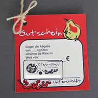 Je nach Gewicht der Ernte, die Sie bei uns abliefern, bekommen Sie einen Einkaufsgutschein von unserem Geschäft.